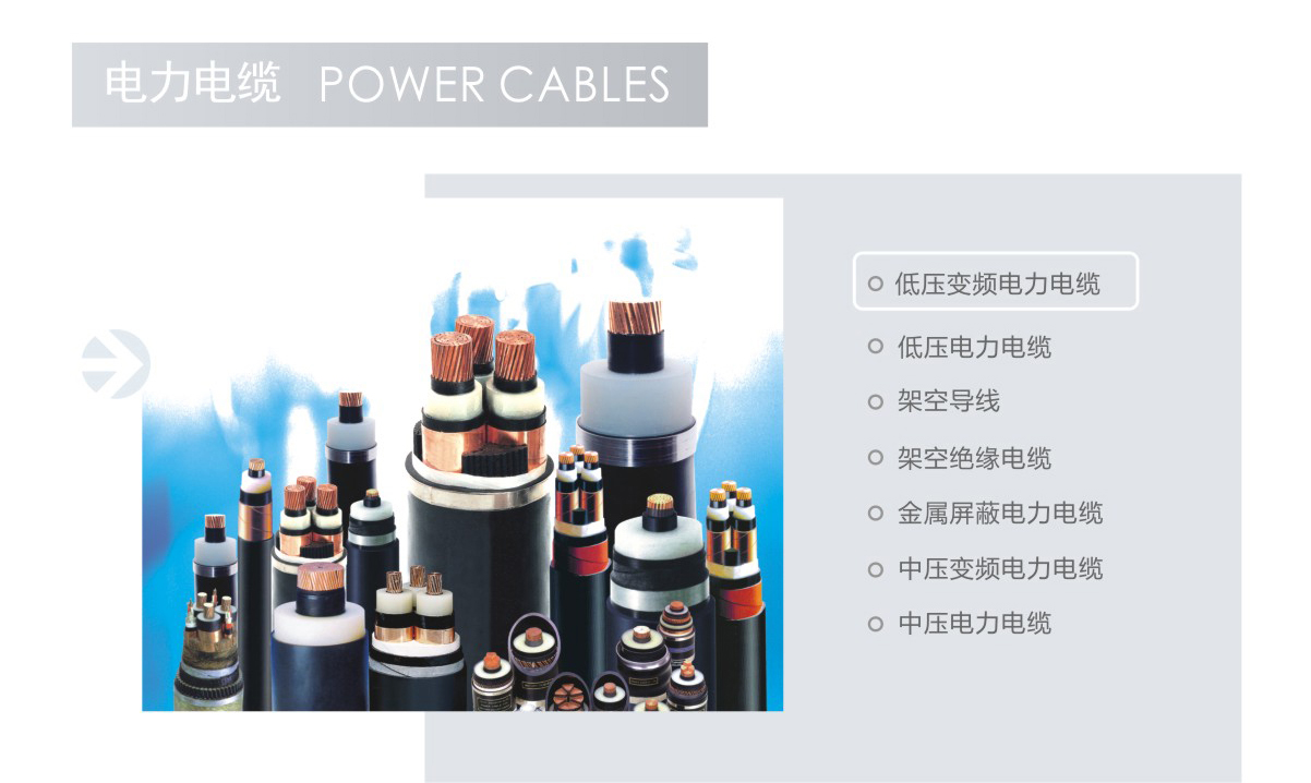 产品主要用在发、配、输、变、供电线路中的强电电能传输,通过的电流大(几十安至几千安)、电压高(220V至500kV及以上)。常用于城市地下电网、发电站引出线路、工矿企业内部供电及过江海水下输电。